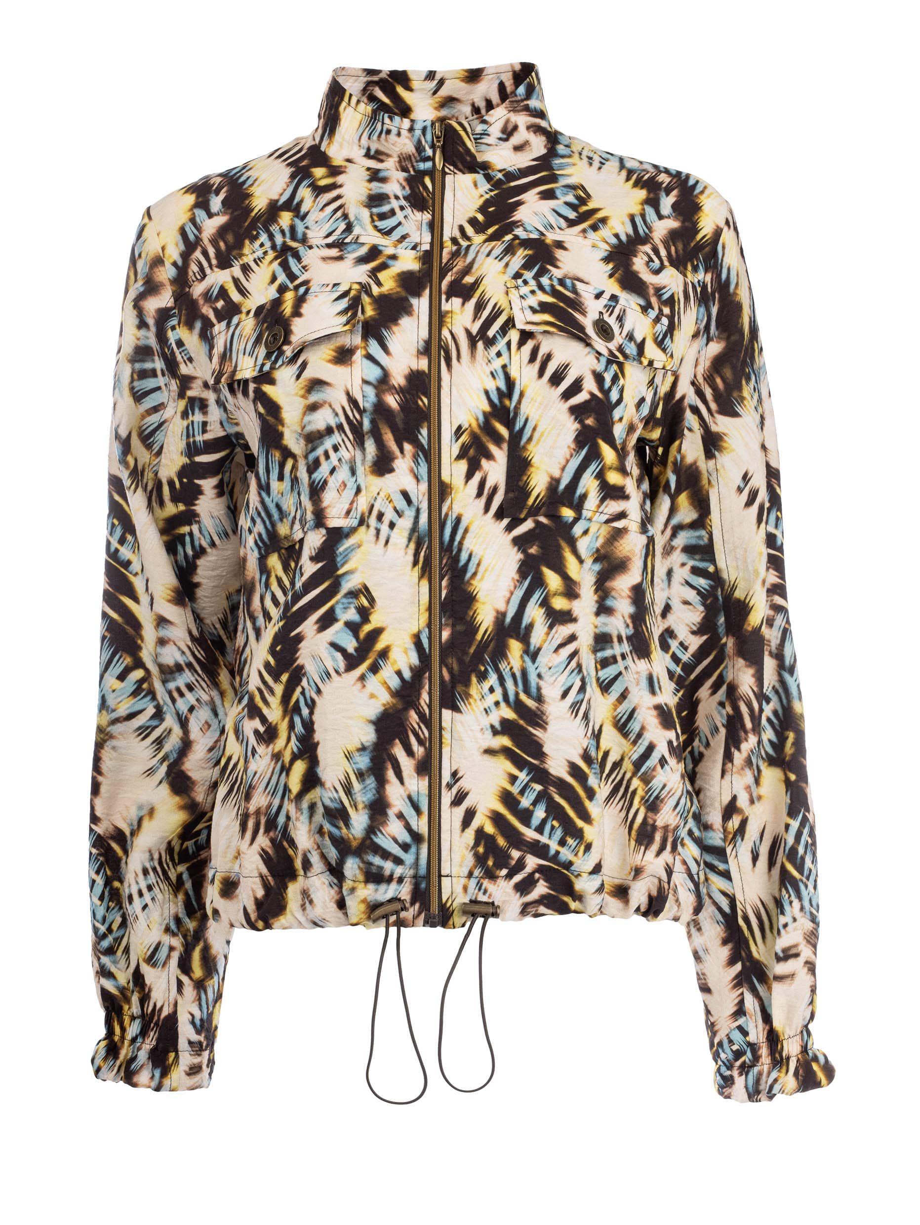 Lurex jacquard jacket van N.E.D. in een grafisch dessin met lange mouwen, ritssluiting, opstaande kraag, twee klepzakken op de borst en een drawstring in de zoom. Materiaal: Polyester 70%| viscose 15%| metal 10%| elastan 5%