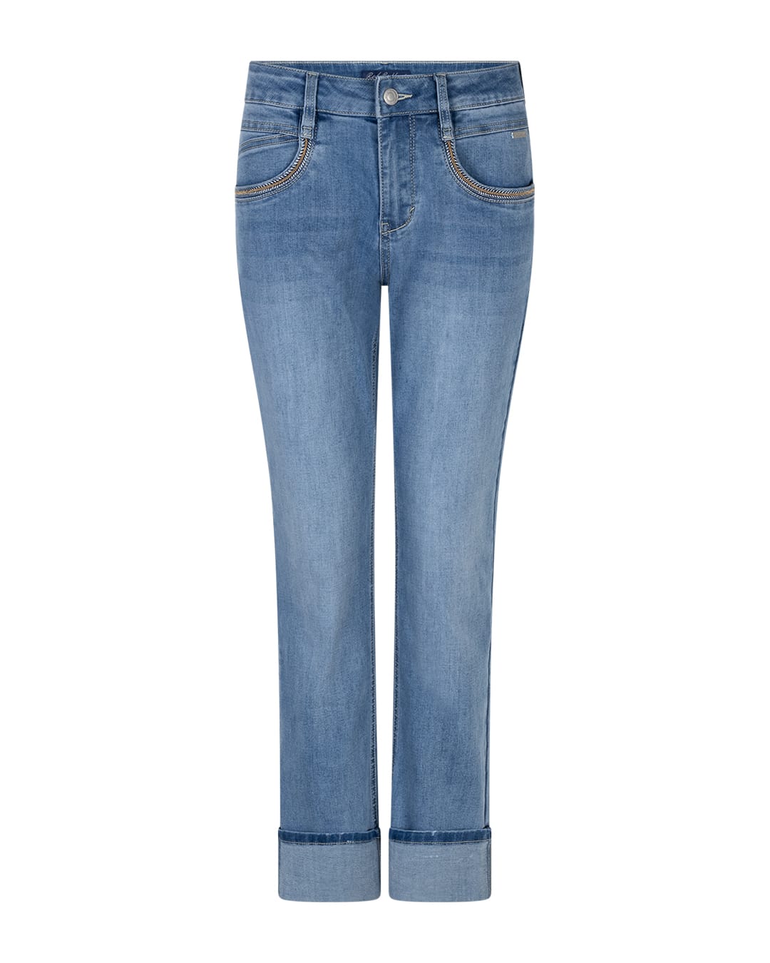 4-pocket straight-fit jeans van Red Button met dubbele knoop- en ritssluiting, middelhoge taille, borduursels langs de voorzakken en omslag onderaan de pijpen. Materiaal: Katoen 71%| recycled polyester 27%| elastan 2%