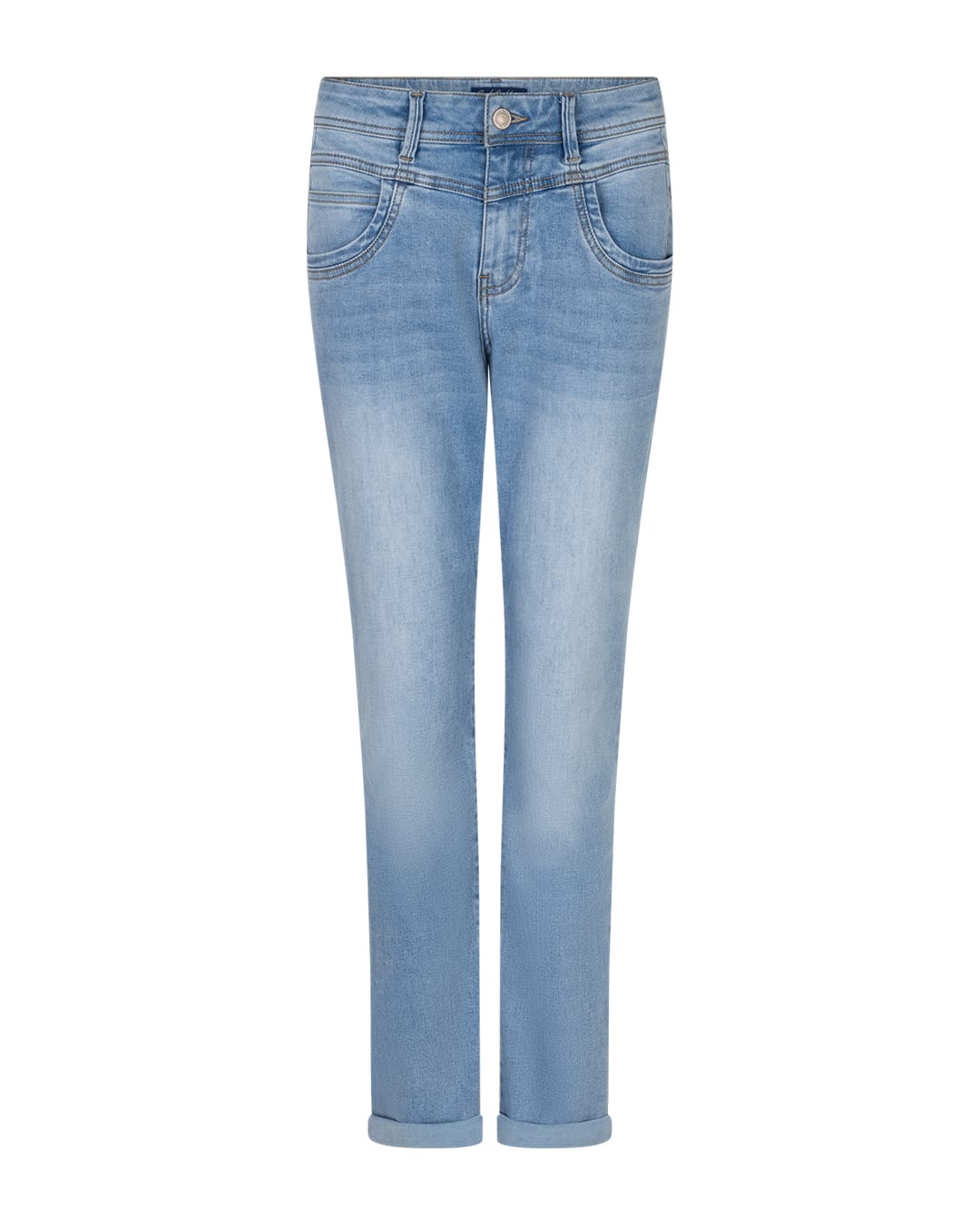 4-pocket jeans van Red Button met taps toelopende pijpen voorzien van omslag, hoge taille en een knoop- en ritssluiting. Materiaal: Katoen 71%| gerecycled polyester 27%| elastan 2%