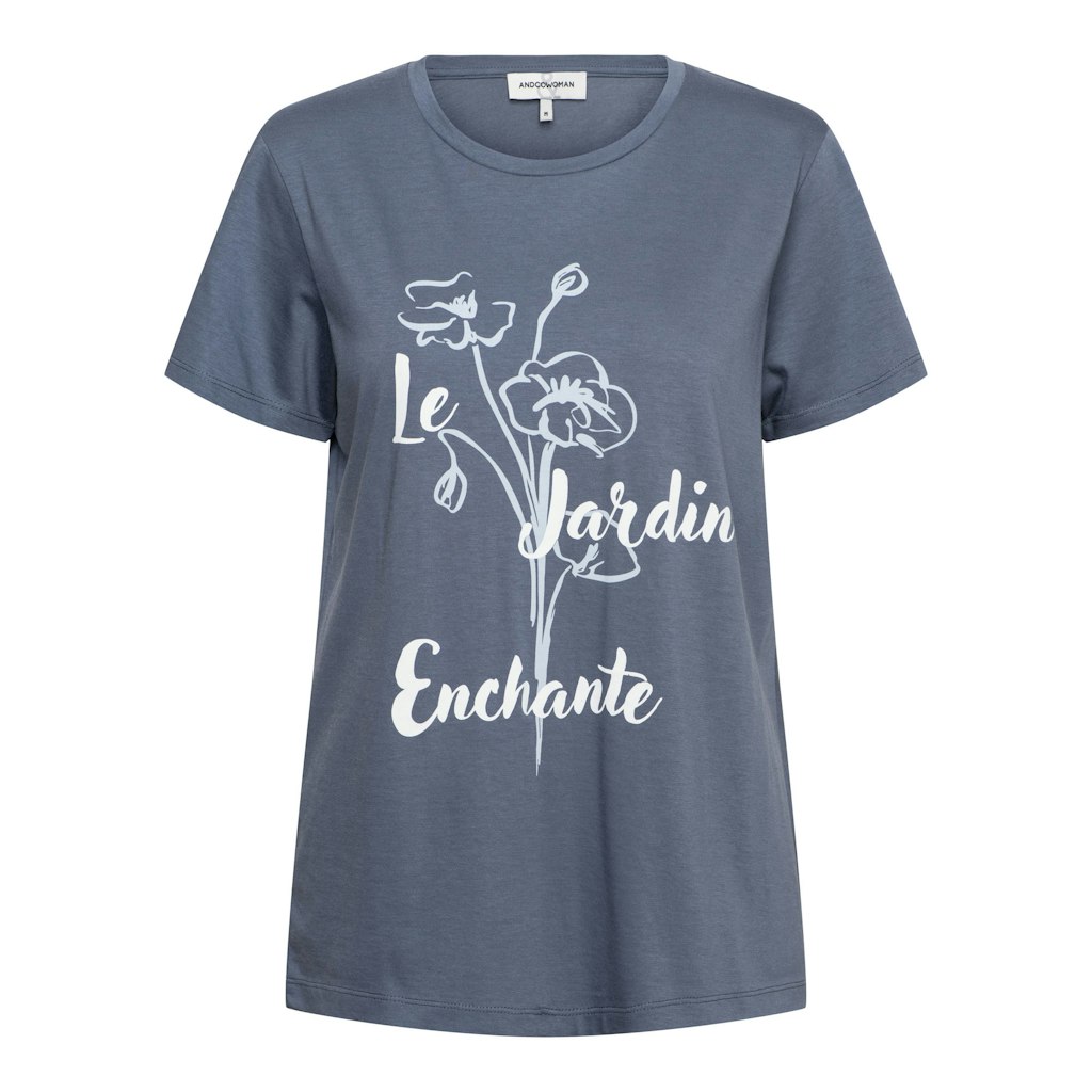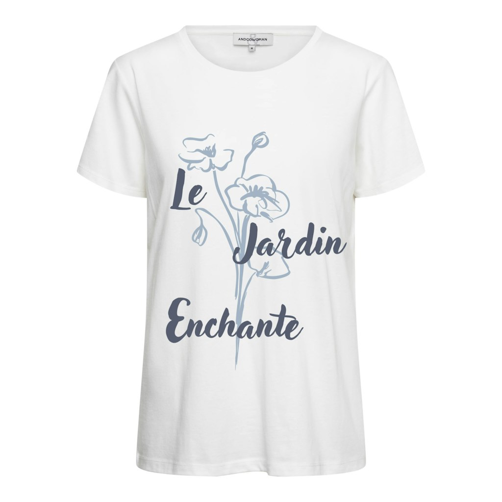 T-shirt van &Co Woman met korte mouwen, ronde hals en een print aan de voorzijde. Materiaal: Modal 50%| katoen 50%
