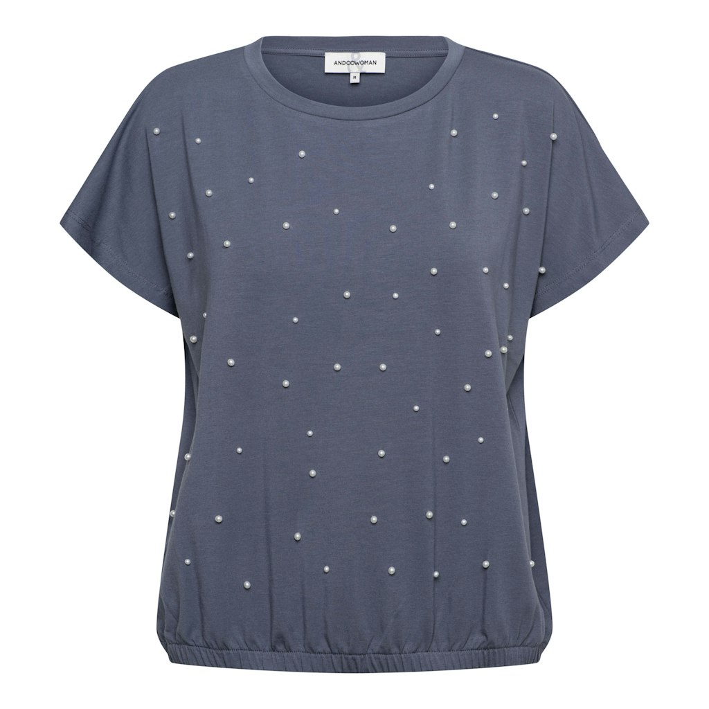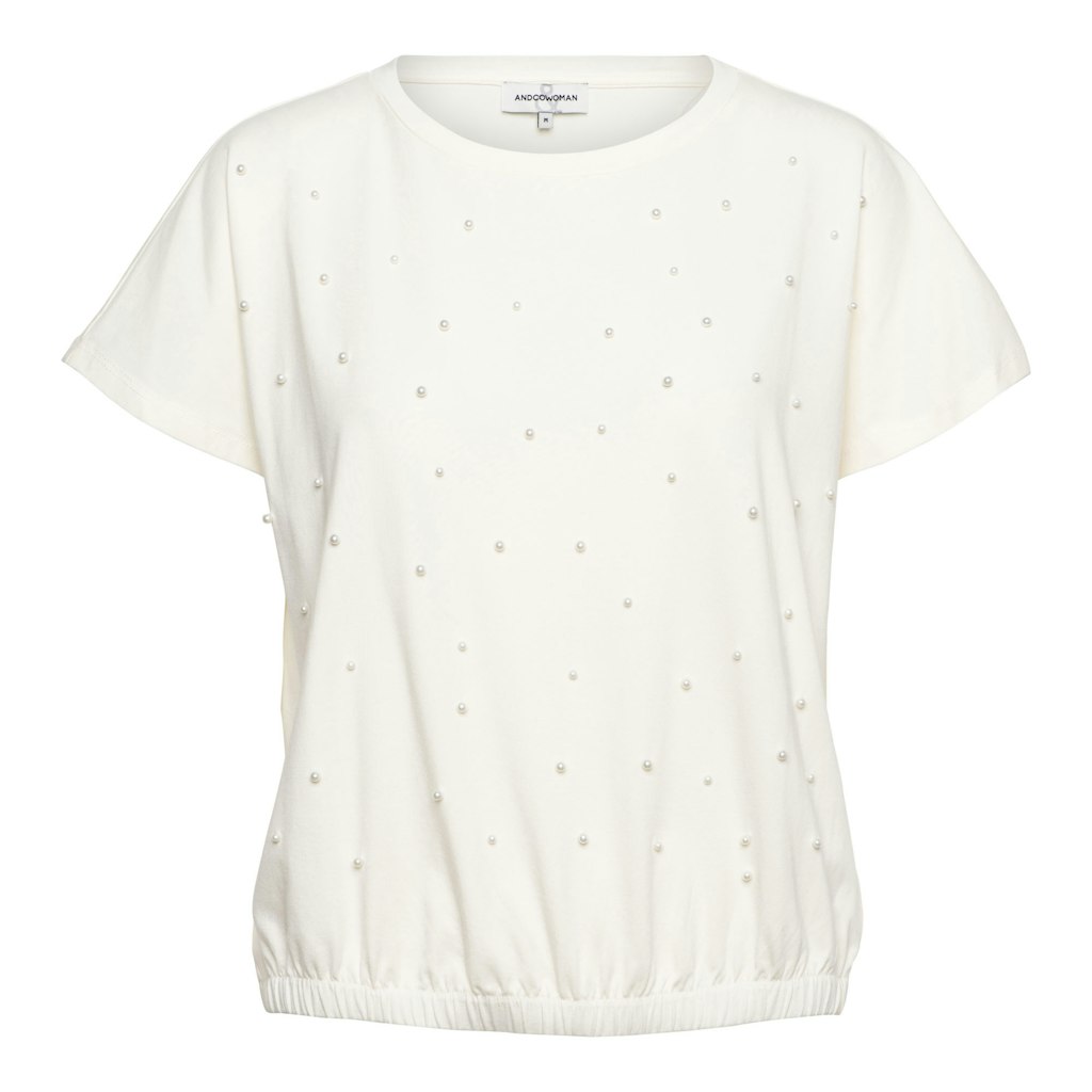 Shirt van &Co Woman voorzien van strass-steentjes aan de voorzijde met korte aangeknipte mouwen, ronde hals en een elastische zoom. Materiaal: Katoen 48%| modal 48%| elastan 4%