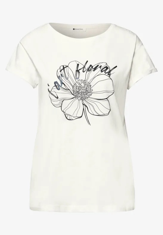 T-shirt van Street One met korte mouwen voorzien van omslag, ronde hals, zijsplitten en een Artwork aan de voorzijde. Materiaal: Katoen 100%
