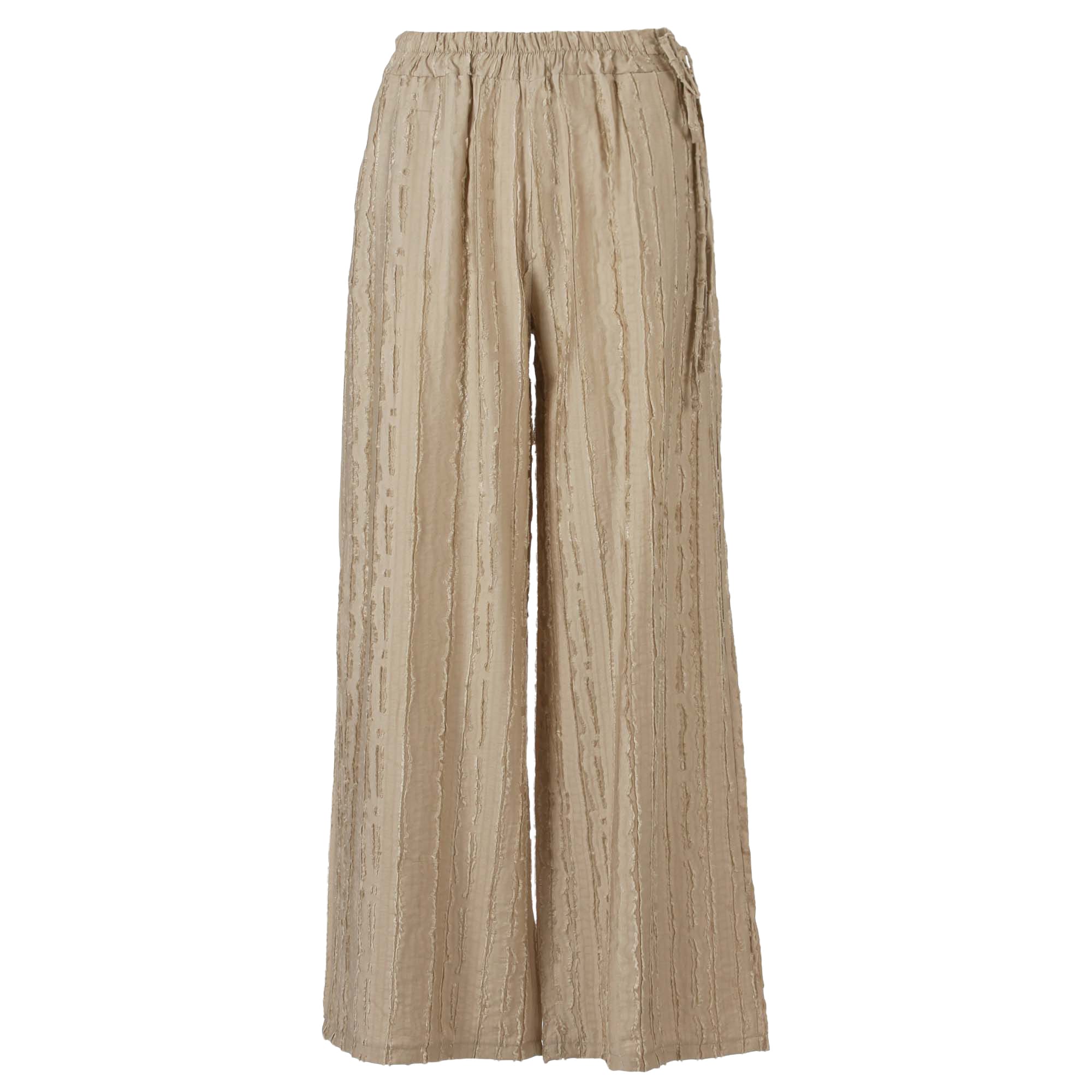 Broek van Enjoy in een structuur dessin met wijde pijpen, steekzakken en een elasische tailleband. Materiaal: Viscose 87%| polyamide 13%