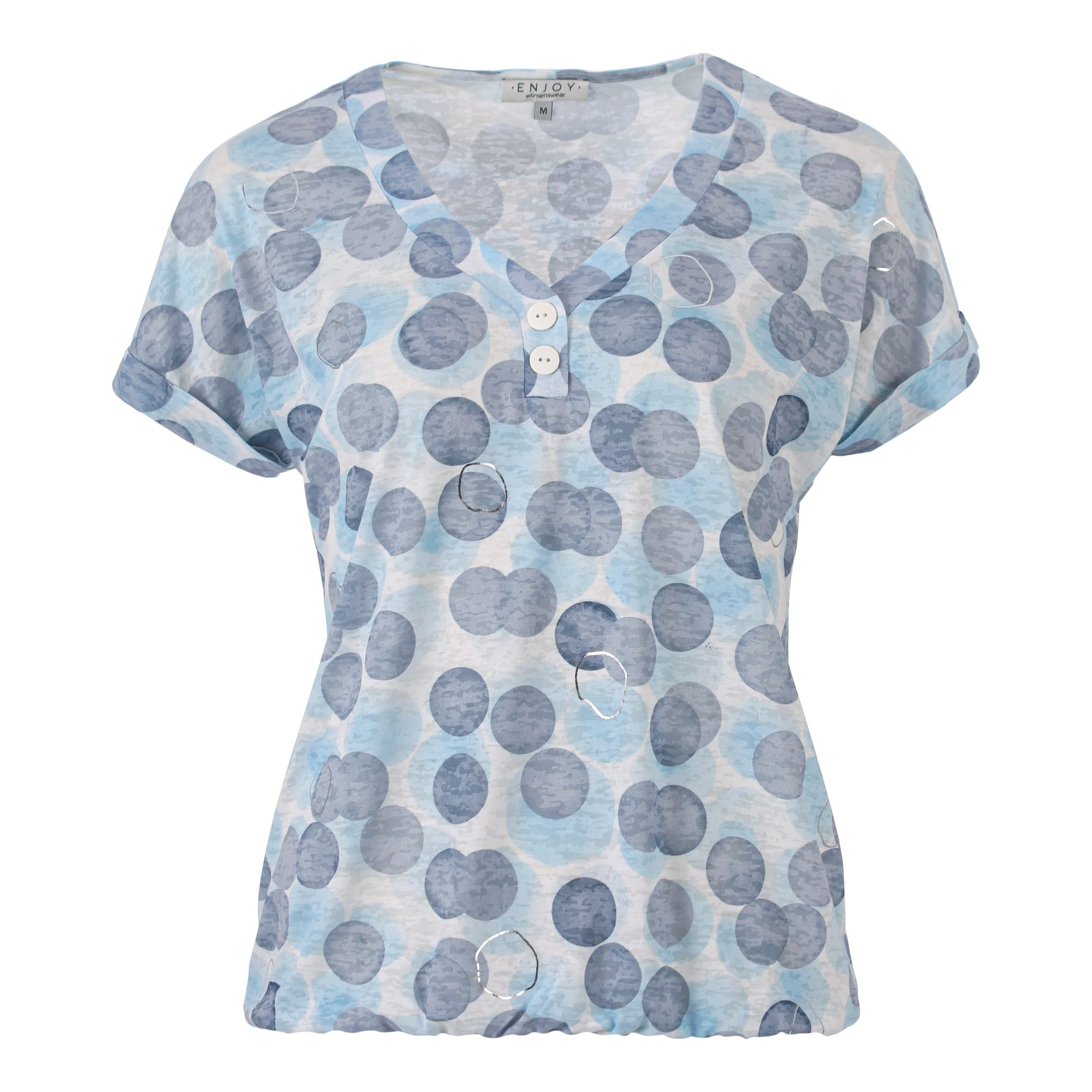 Blouson van Enjoy in een all-over dessin met korte aangeknipte mouwen voorzien van omslag, V-hals voorzien van korte knoopsluiting en een elastische zoom.