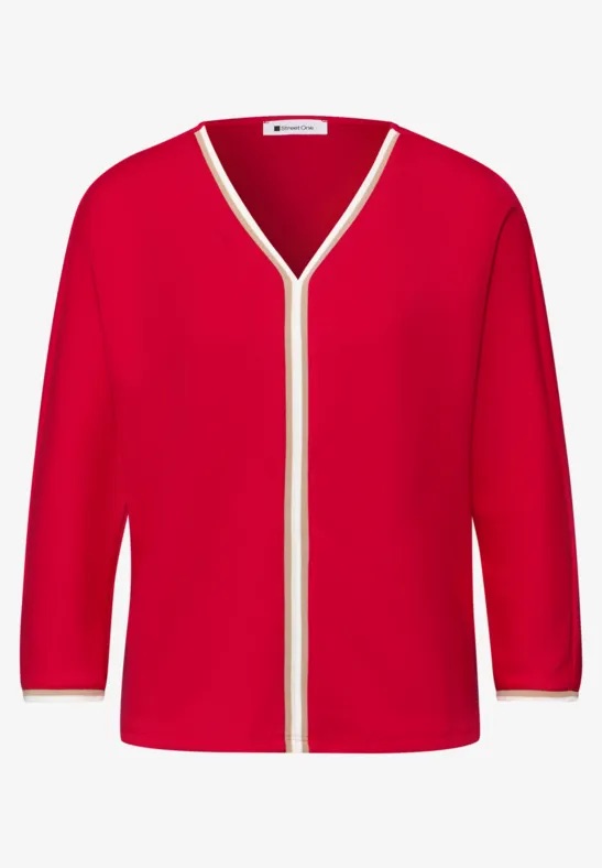 Jersey shirt van Street One met driekwart mouwen, V-hals en contrasterende details. Materiaal: Polyester 48%| viscose 48%| elastan 4%