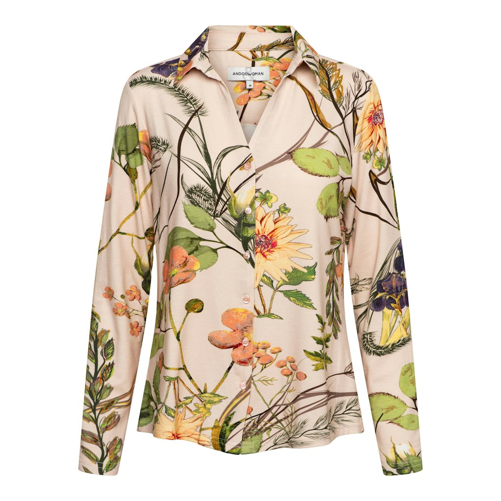 Blouse van &Co Woman in een bloemen dessin met lange mouwen, kraag, V-hals en een knoopsluiting. Materiaal: Viscose 96%| elastan 4%