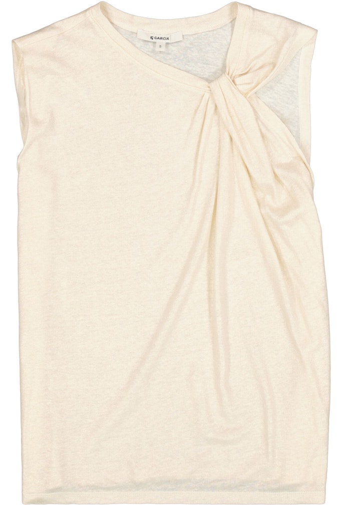 Mouwloze linnen top van Garcia met een gedraaid detail aan de ronde hals. Materiaal: Linnen 55| viscose 45%