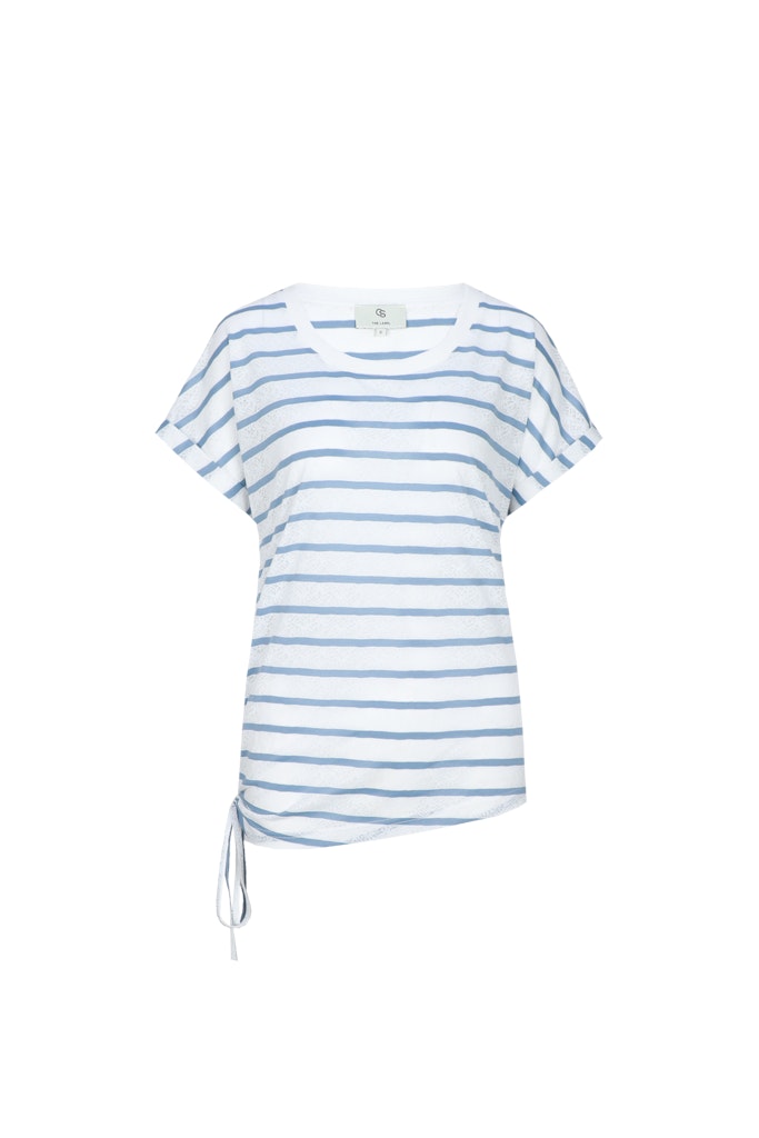 Gestreept shirt van C&S The Label met korte aangeknipte mouwen voorzien van omslag, ronde hals en een rimpeldetail aan de zijkant. Materiaal: Polyester 100%