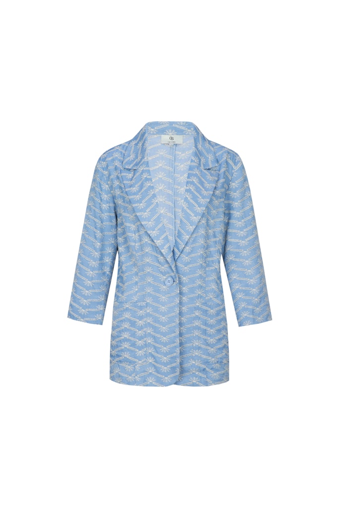 Blazer van C&S The Label in een structuur dessin met driekwart mouwen, reverskraag, knoopsluiting en twee opgestikte zakken. Materiaal: Viscose 50%| polyester 50%