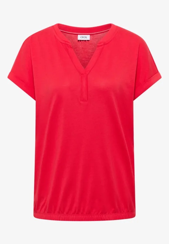 Shirt van Cecil met korte mouwen, V-hals en een elastische zoom. Materiaal: Katoen 50%| modal 50%