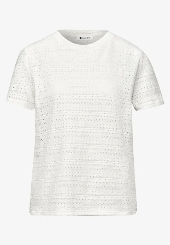 Opengewerkt shirt van Street One met korte mouwen en een ronde hals. Materiaal: Katoen 97%| elastan 3%
