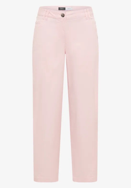 Enkellange 5-pocket broek van Cecil met een knoop- en ritssluiting, dubbele riemlussen en extra steekzakken aan de voorzijde. Materiaal: Katoen 97%| elastan 3%