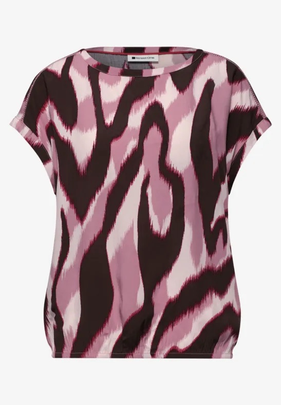 Blouse van Street One in een all-over dessin met korte aangeknipte mouwwen voorzien van omslag, getapete details, ronde hals en een elastische zoom. Materiaal: Viscose 100%