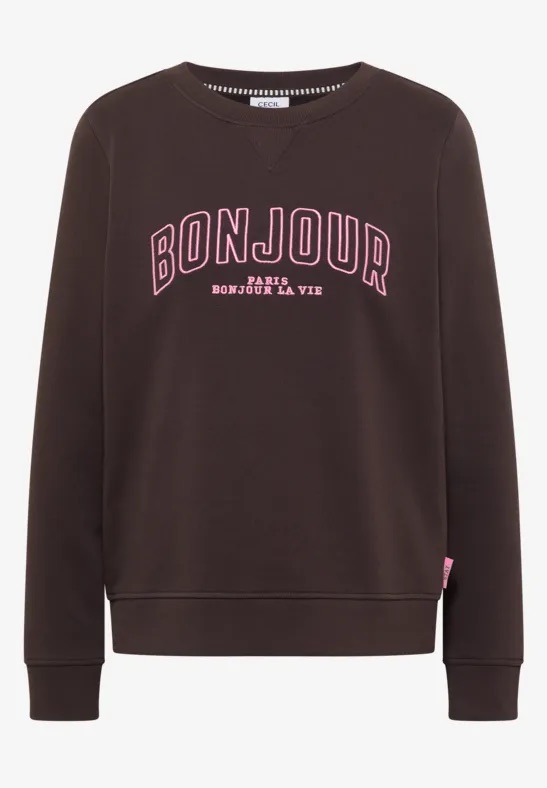 Sweater van Cecil met lange mouwen, ronde hals, ribgebreide boorden en een geborduurde tekstprint op de borst. Materiaal: Katoen 100%