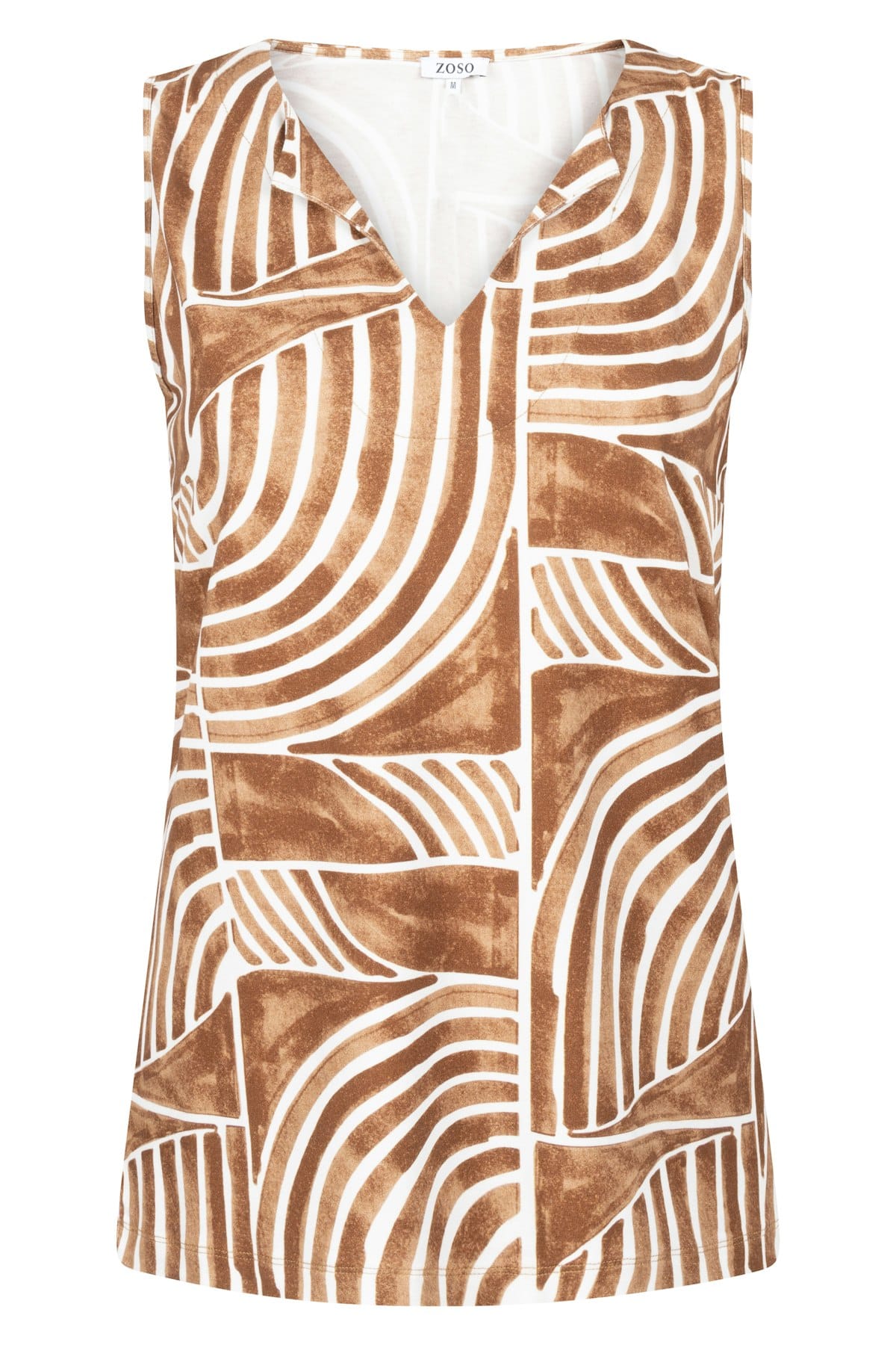 Mouwloze top van Zoso in een grafisch dessin met een openvallende V-hals. Materiaaal: Viscose 95%| elastan 5%