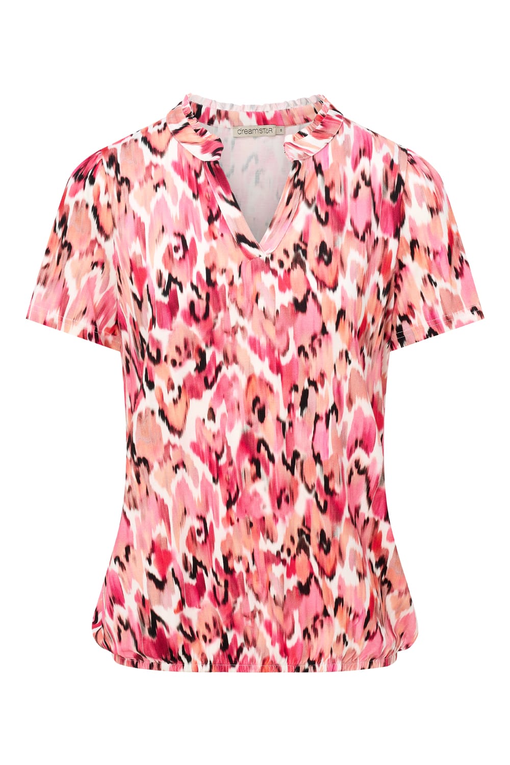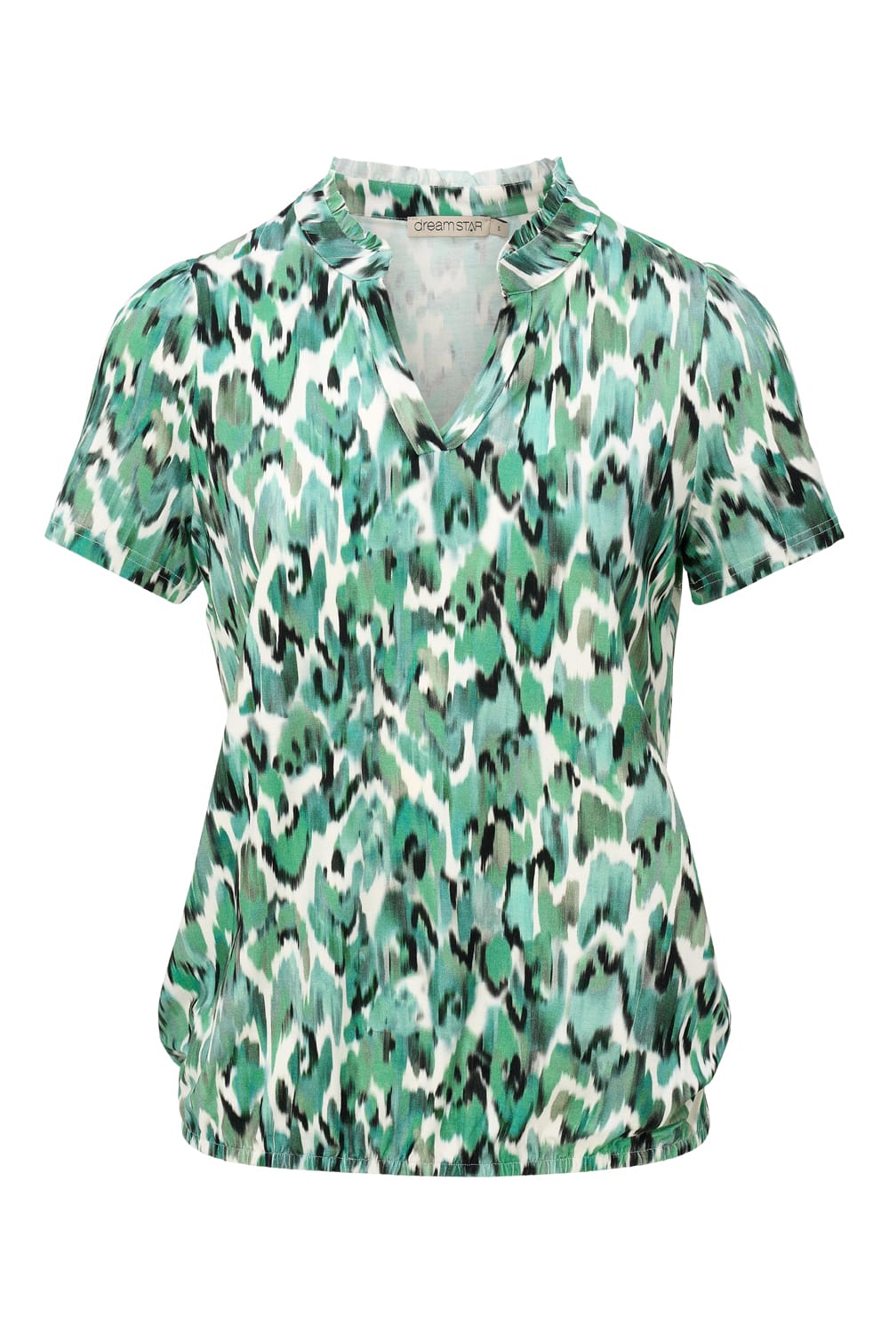 Shirt van Dreamstar in een all-over dessin met lange mouwen, ronde hals voorzien van split en een elastische onderzijde. Materiaal: Viscose 95%| elastan 5%
