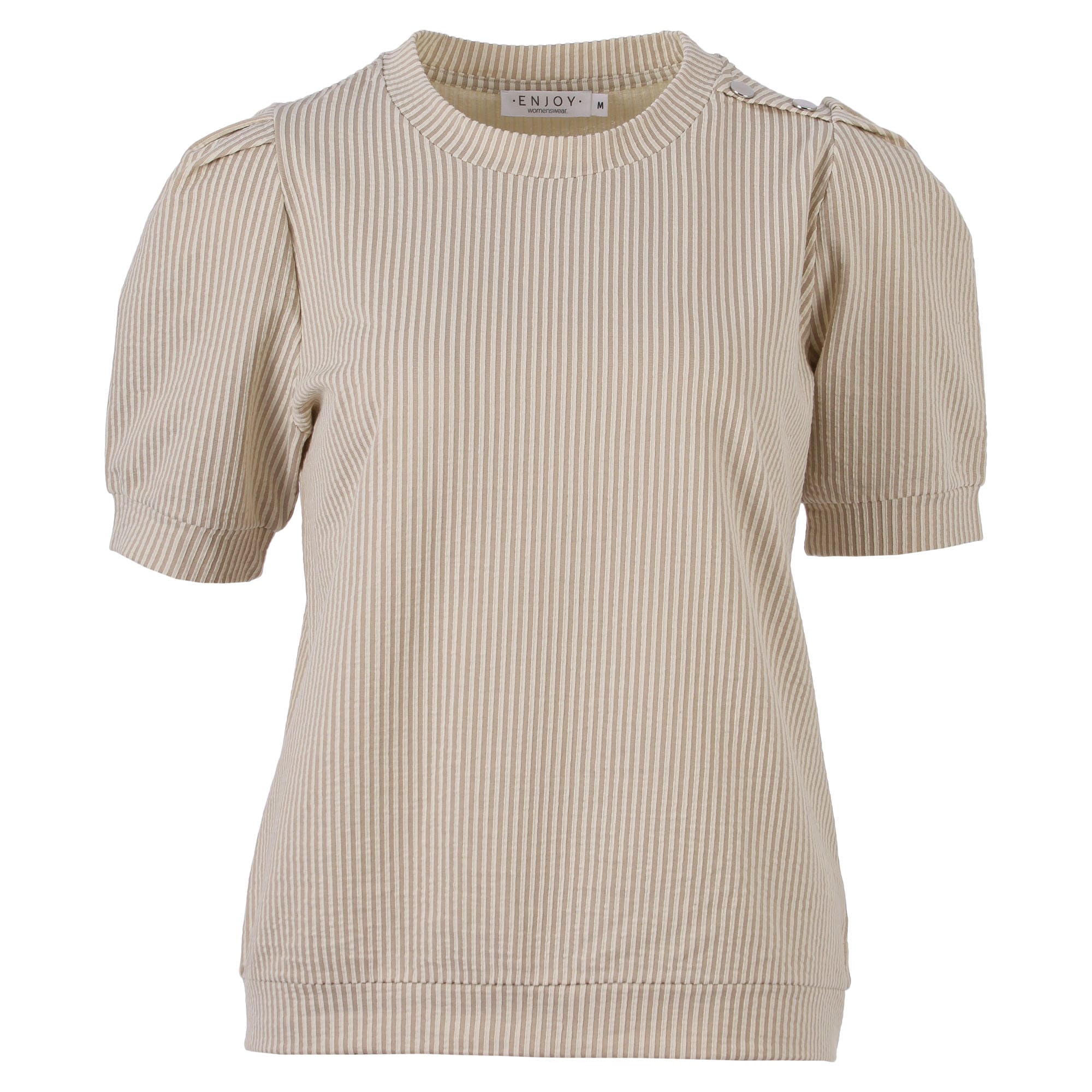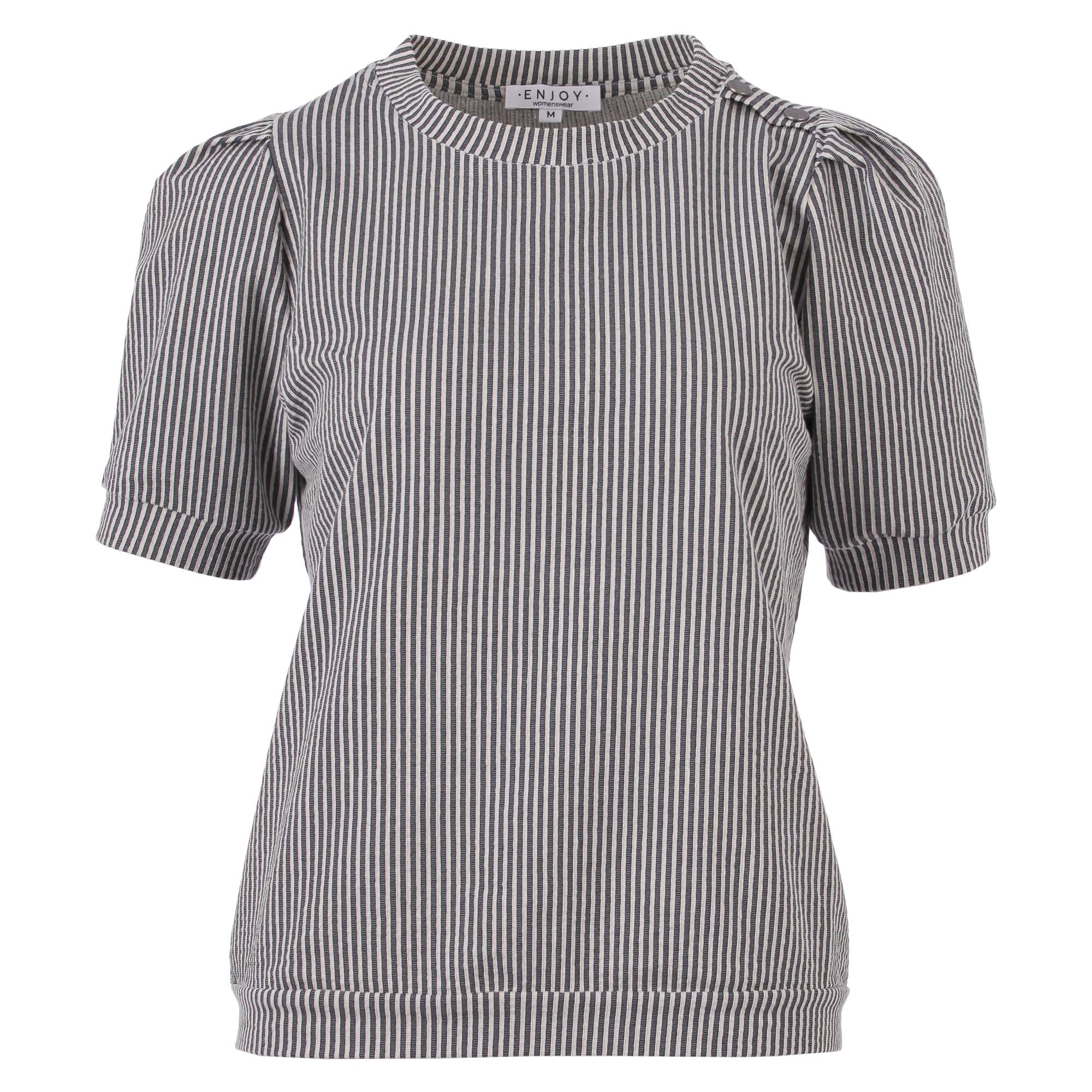 Gestreept shirt van Enjoy met korte pofmouwen, licht opstaande kraag en een elastische boord aan de onderzijde.