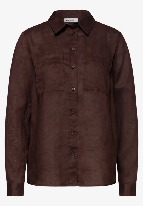 Linnen blouse van Street One met lange mouwen, kraag, knoopsluiting en twee opgestikte borstzakken. Materiaal: Linnen 100%