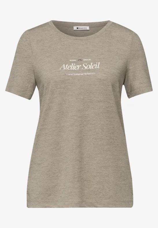 T-shirt van Street One in een gemêleerd dessin met korte mouwen, ronde hals en een tekstprint op de borst.