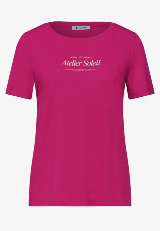 T-shirt van Street One met korte mouwen, ronde hals en een tekstprint op de borst. Materiaal: Polyester 80%| viscose 20%