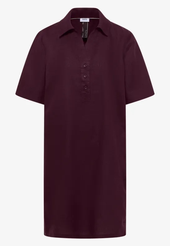 Linnen knielange jurk van Cecil met korte mouwen, kraag, steekzakken, rugplooi en een V-hals voorzien van korte knoopsluiting. Materiaal: Linnen 100%
