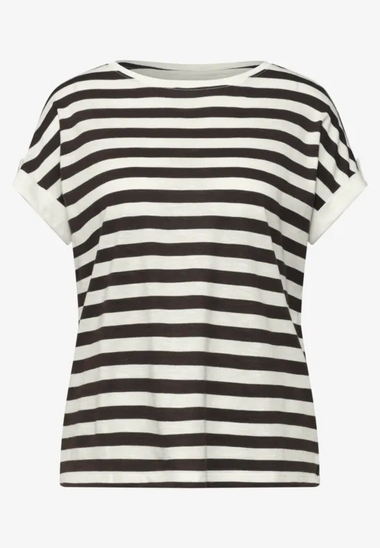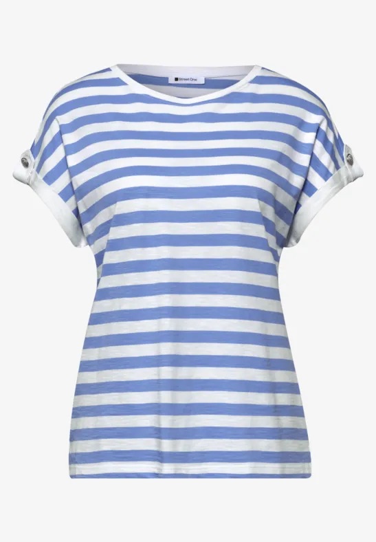 Gestreept jersey shirt van Street One met een ronde hals en korte aangeknipte mouwen voorzien van knoopdetail. Materiaal: Katoen 50%| modal 50%