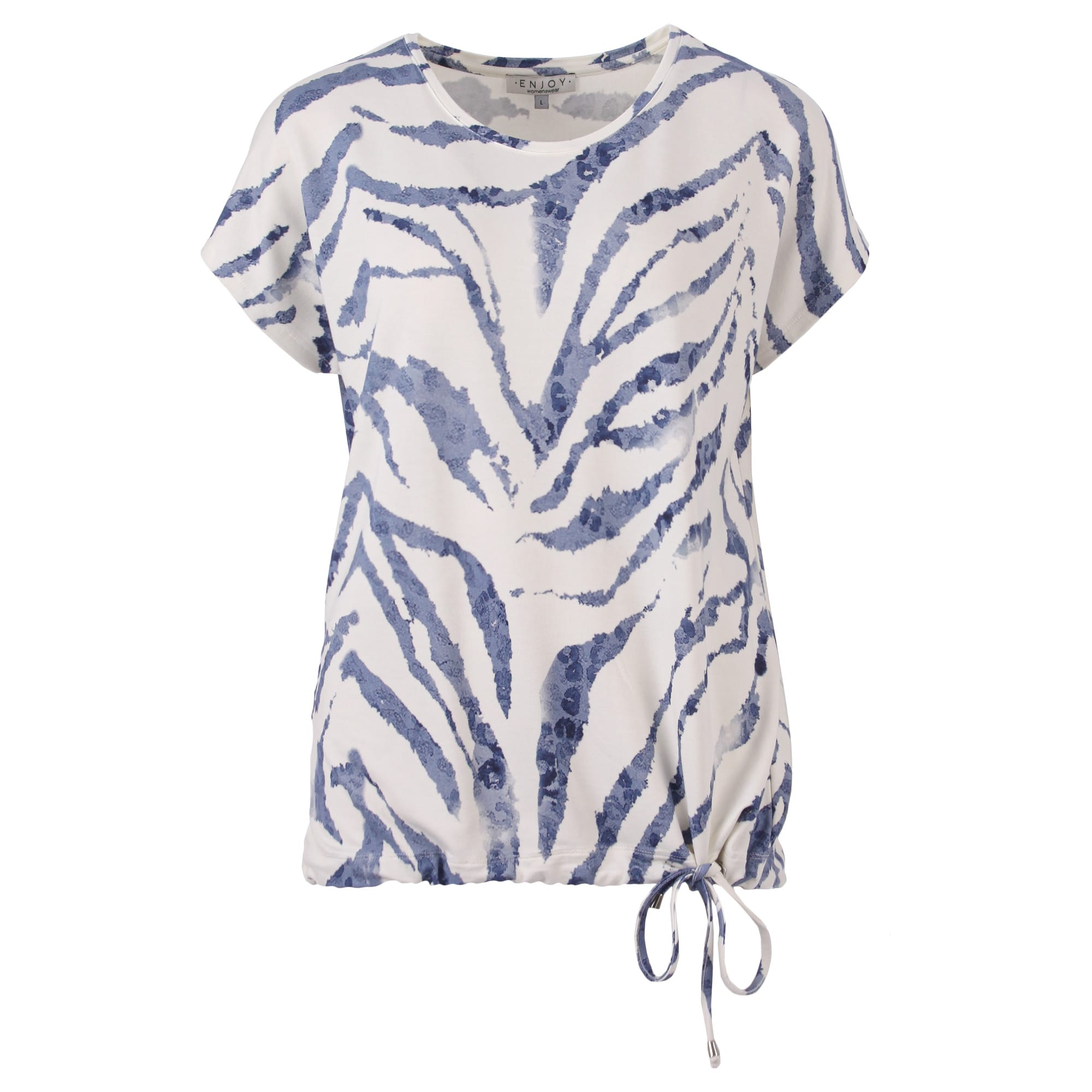 Shirt van Enjoy in een batik dierenprint met korte aangeknipte mouwen, ronde hals en een trekkoord in de zoom. Materiaal: Viscose 95%| elastan 5%