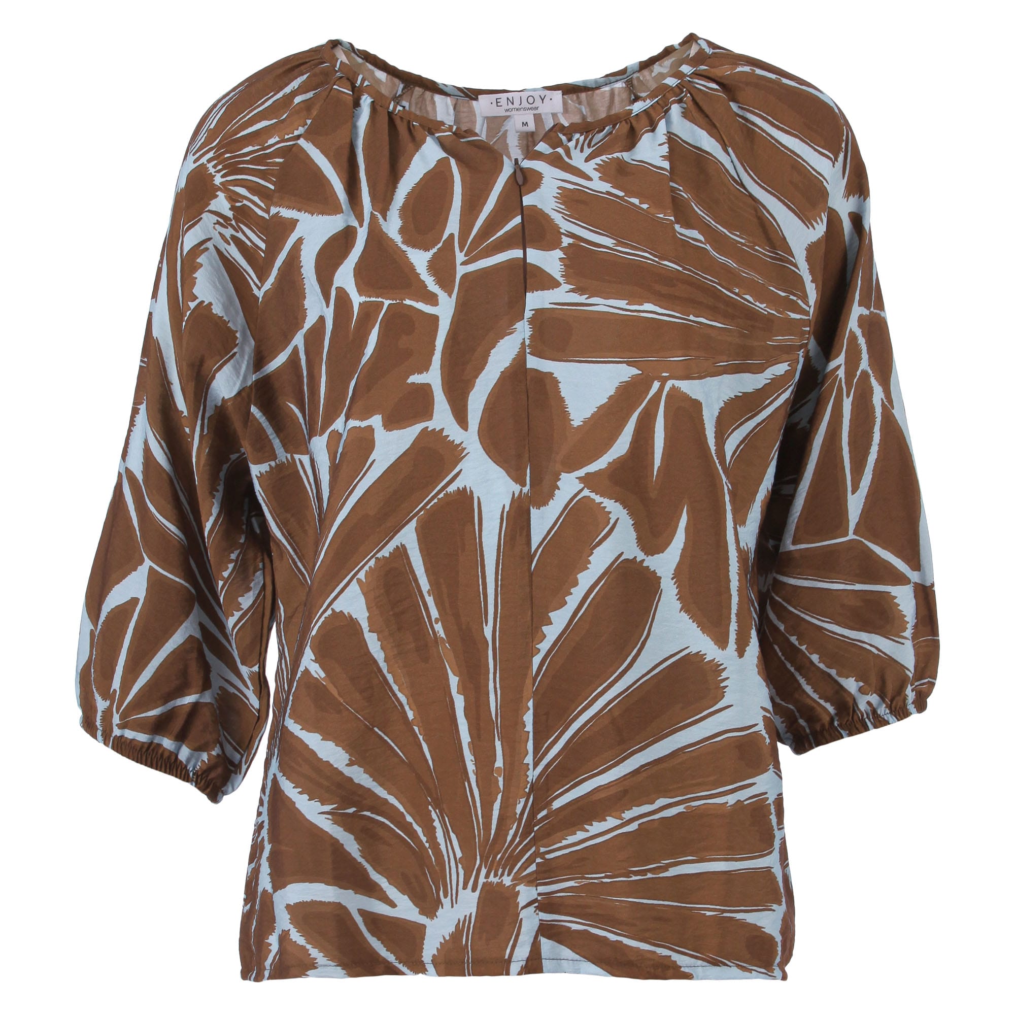 Blouse van Enjoy in een all-over dessin met driekwart pofmouwen en een ronde hals voorzien van ingewerkte plooien en een verborgen ritssluiting aan de voorzijde. Materiaal: Viscose 80%| polyamide 20%