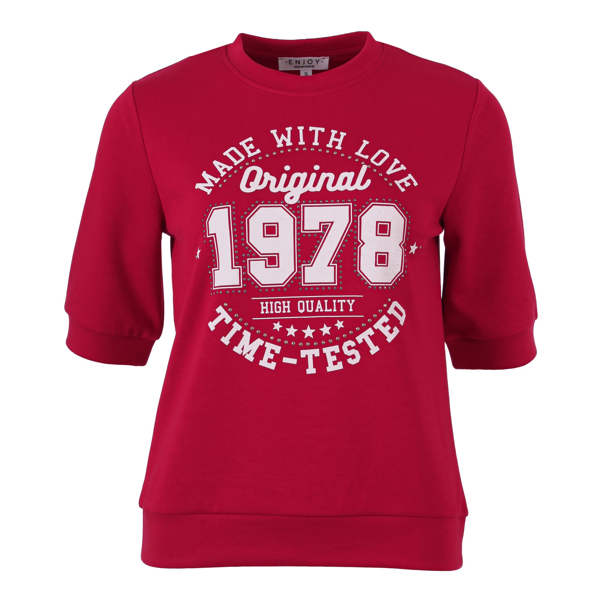 Shirt van Enjoy met halflange mouwen, licht opstaande kraag, print voorzien van studs aan de voorzijde en elastische boorden. Materiaal: Viscose 54%| polyester 39%| elastan 7%