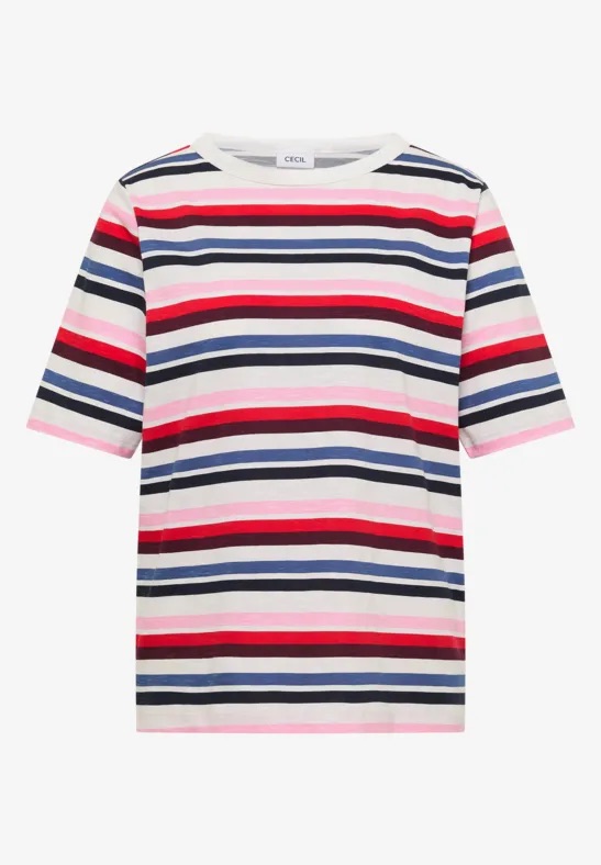 Gestreept shirt van Cecil met korte mouwen en een ronde hals. Materiaal: Katoen 100%
