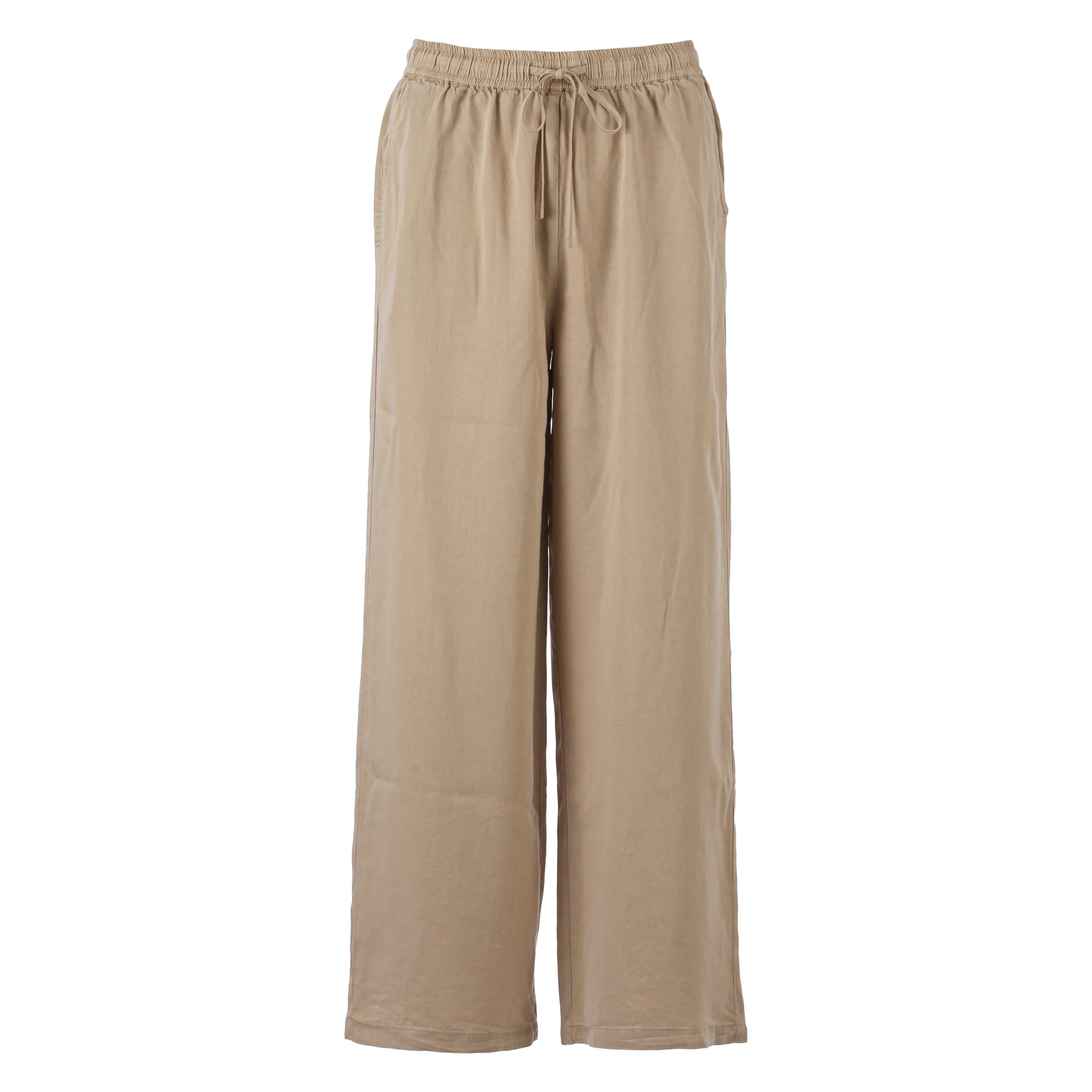 Broek van Enjoy in een denim-look met wijde pijpen, steekzakken en een elastische tailleband voorzien van trekkoord.
