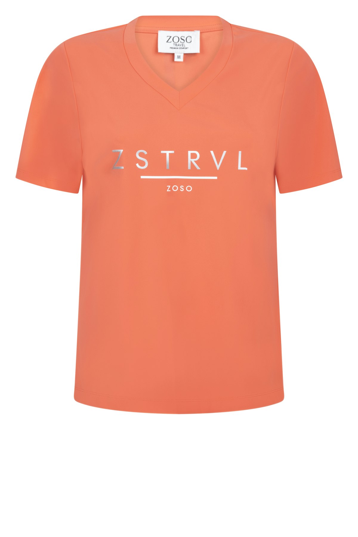 T-shirt van Zoso met korte mouwen, V-hals, glanzende teksprint op de borst en glanzend detail aan de achterzijde.